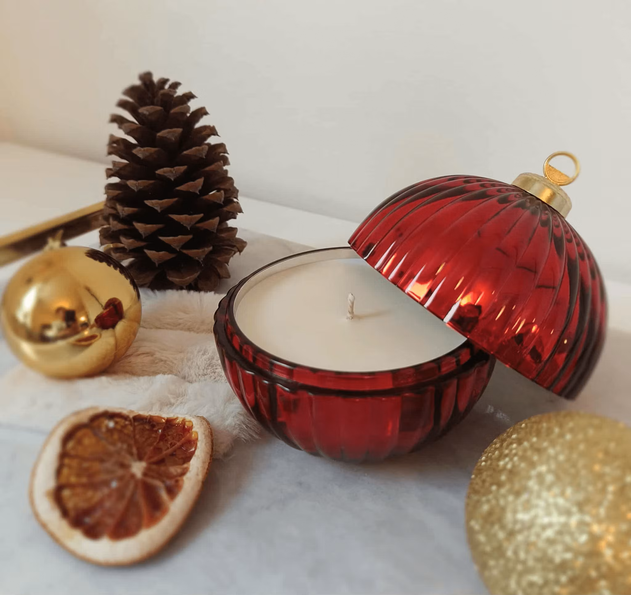 Upplev doften av jul med vårt handgjorda doftljus Polkagris i en elegant röd julkula. Ljuset är tillverkat av 100 % sojavax och sprider en frisk och söt doft som påminner om klassisk polkagris. Perfekt för att skapa en varm och inbjudande känsla under vintermånaderna.
